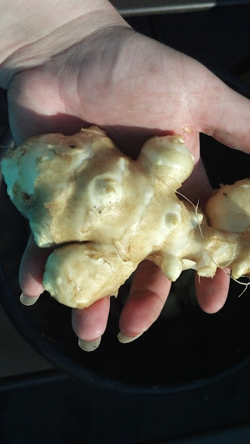 A small harvest of Jerusalem Artichokes. This all came from a spot about three feet square. I have 10 feet of them....